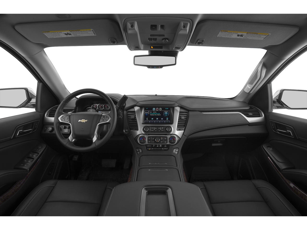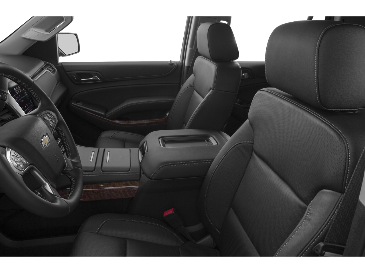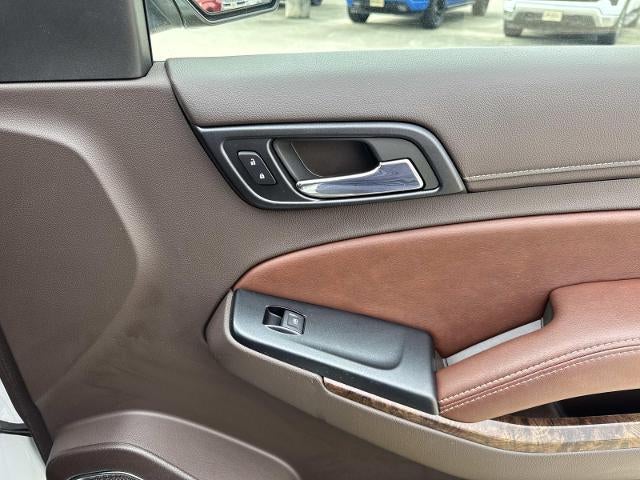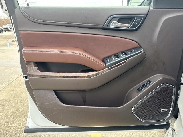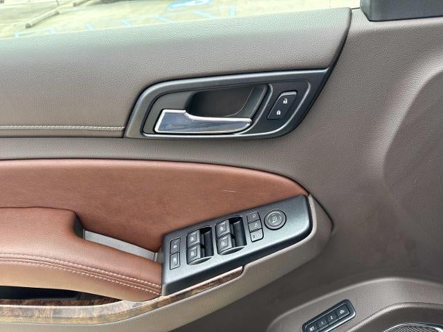 License Plate Front Mounting Package, Magnetic Ride Control Suspension Package, Preferred Equipment Group 1LZ (3rd Row 60/40 Power Fold Split-Bench, 5 12-Volt Auxiliary Power Outlets, Auto-Dimming Inside Rear-View Mirror, Bose Centerpoint Premium 10-Speaker Surround Sound, Driver Inboard & Front Passenger Airbags, Floor Console, Fog Lamps, Forward Collision Alert, Front & Rear Parking Assist, Hands Free Power Liftgate, Heated 2nd Row Seats, Heated Leather Wrapped Steering Wheel, Heavy-Duty Rear Locking Differential, Keyless Start Switch, Lane Departure Warning & Safety Alert Seat, Memory Settings, Passive Entry System, Power Adjustable Pedals, Power Release 2nd Row Bucket Seats, Power Tilt & Telescoping Steering Column, Power-Folding Heated Outside Mirrors, Rear Cross-Traffic Alert, Remote Keyless Entry, Side Blind Zone Alert w/Lane Change Alert, Universal Home Remote, and Wireless Charging), Sun, Entertainment & Destinations Package (Power Sunroof and Rear Seat Blu-Ray/DVD Entertainment System), 10 Speakers, 3.08 Rear Axle Ratio, 3rd row seats: split-bench, 4-Wheel Disc Brakes, ABS brakes, Adaptive suspension, Adjustable pedals, Air Conditioning, Alloy wheels, AM/FM radio: SiriusXM, Auto-dimming door mirrors, Auto-dimming Rear-View mirror, Automatic temperature control, Bluetooth® For Phone, Bodyside moldings, Brake assist, Bumpers: body-color, CD player, Compass, Delay-off headlights, Driver door bin, Driver vanity mirror, Dual front impact airbags, Dual front side impact airbags, Electronic Stability Control, Emergency communication system: OnStar Directions & Connections, Exterior Parking Camera Rear, Front anti-roll bar, Front Bucket Seats, Front Center Armrest, Front dual zone A/C, Front fog lights, Front Heated Reclining Bucket Seats, Front reading lights, Front wheel independent suspension, Fully automatic headlights, Garage door transmitter, Heated & Cooled Driver & Front Passenger Seats, Heated door mirrors, Heated front seats, Heated rear seats, Heated steering wheel, High-Intensity Discharge Headlights, Illuminated entry, Low tire pressure warning, Memory seat, Navigation System, Occupant sensing airbag, Outside temperature display, Overhead airbag, Overhead console, Panic alarm, Passenger door bin, Passenger vanity mirror, Pedal memory, Perforated Leather-Appointed Seat Trim, Power door mirrors, Power driver seat, Power Liftgate, Power passenger seat, Power steering, Power windows, Premium audio system: Chevrolet MyLink, Radio: Chevrolet MyLink w/Navigation/AM/FM Stereo, Rain sensing wipers, Rear air conditioning, Rear anti-roll bar, Rear reading lights, Rear window defroster, Rear window wiper, Re