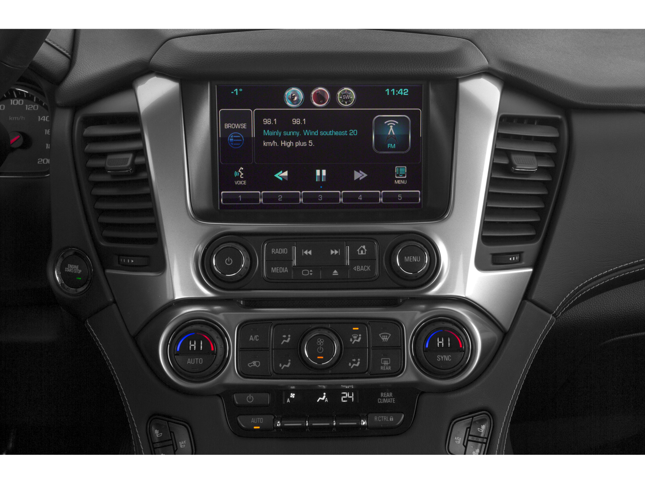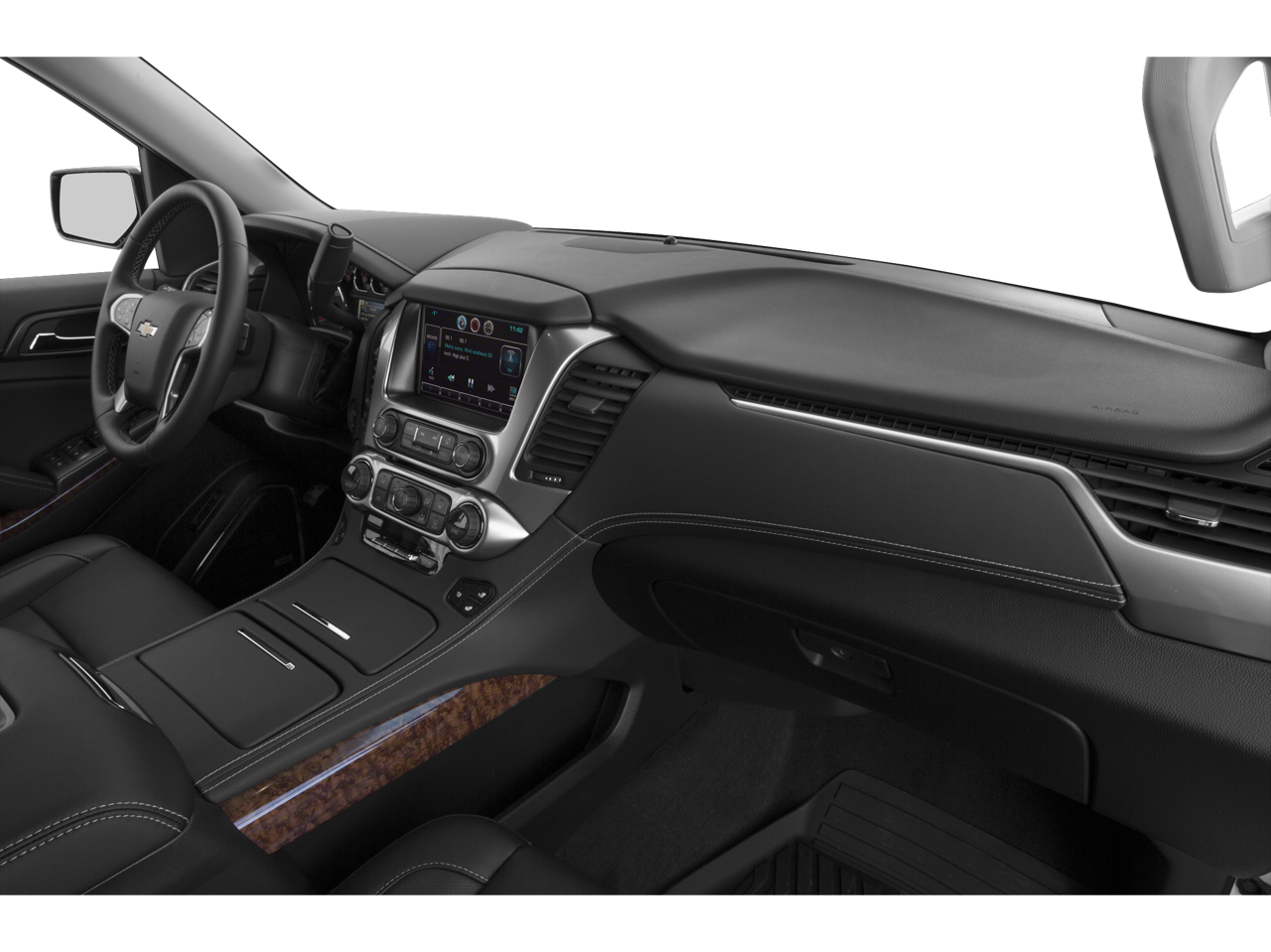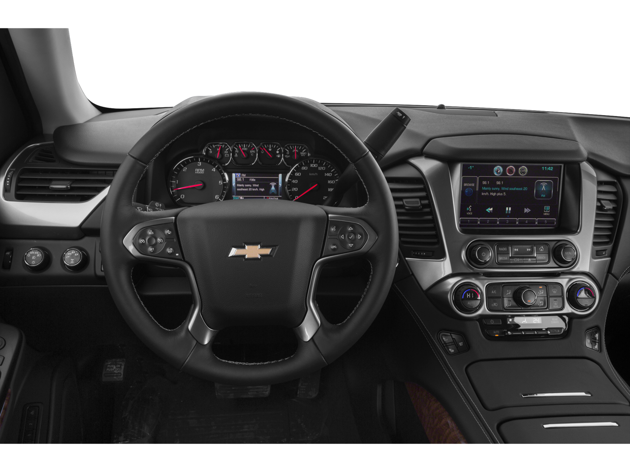 License Plate Front Mounting Package, Magnetic Ride Control Suspension Package, Preferred Equipment Group 1LZ (3rd Row 60/40 Power Fold Split-Bench, 5 12-Volt Auxiliary Power Outlets, Auto-Dimming Inside Rear-View Mirror, Bose Centerpoint Premium 10-Speaker Surround Sound, Driver Inboard & Front Passenger Airbags, Floor Console, Fog Lamps, Forward Collision Alert, Front & Rear Parking Assist, Hands Free Power Liftgate, Heated 2nd Row Seats, Heated Leather Wrapped Steering Wheel, Heavy-Duty Rear Locking Differential, Keyless Start Switch, Lane Departure Warning & Safety Alert Seat, Memory Settings, Passive Entry System, Power Adjustable Pedals, Power Release 2nd Row Bucket Seats, Power Tilt & Telescoping Steering Column, Power-Folding Heated Outside Mirrors, Rear Cross-Traffic Alert, Remote Keyless Entry, Side Blind Zone Alert w/Lane Change Alert, Universal Home Remote, and Wireless Charging), Sun, Entertainment & Destinations Package (Power Sunroof and Rear Seat Blu-Ray/DVD Entertainment System), 10 Speakers, 3.08 Rear Axle Ratio, 3rd row seats: split-bench, 4-Wheel Disc Brakes, ABS brakes, Adaptive suspension, Adjustable pedals, Air Conditioning, Alloy wheels, AM/FM radio: SiriusXM, Auto-dimming door mirrors, Auto-dimming Rear-View mirror, Automatic temperature control, Bluetooth® For Phone, Bodyside moldings, Brake assist, Bumpers: body-color, CD player, Compass, Delay-off headlights, Driver door bin, Driver vanity mirror, Dual front impact airbags, Dual front side impact airbags, Electronic Stability Control, Emergency communication system: OnStar Directions & Connections, Exterior Parking Camera Rear, Front anti-roll bar, Front Bucket Seats, Front Center Armrest, Front dual zone A/C, Front fog lights, Front Heated Reclining Bucket Seats, Front reading lights, Front wheel independent suspension, Fully automatic headlights, Garage door transmitter, Heated & Cooled Driver & Front Passenger Seats, Heated door mirrors, Heated front seats, Heated rear seats, Heated steering wheel, High-Intensity Discharge Headlights, Illuminated entry, Low tire pressure warning, Memory seat, Navigation System, Occupant sensing airbag, Outside temperature display, Overhead airbag, Overhead console, Panic alarm, Passenger door bin, Passenger vanity mirror, Pedal memory, Perforated Leather-Appointed Seat Trim, Power door mirrors, Power driver seat, Power Liftgate, Power passenger seat, Power steering, Power windows, Premium audio system: Chevrolet MyLink, Radio: Chevrolet MyLink w/Navigation/AM/FM Stereo, Rain sensing wipers, Rear air conditioning, Rear anti-roll bar, Rear reading lights, Rear window defroster, Rear window wiper, Re