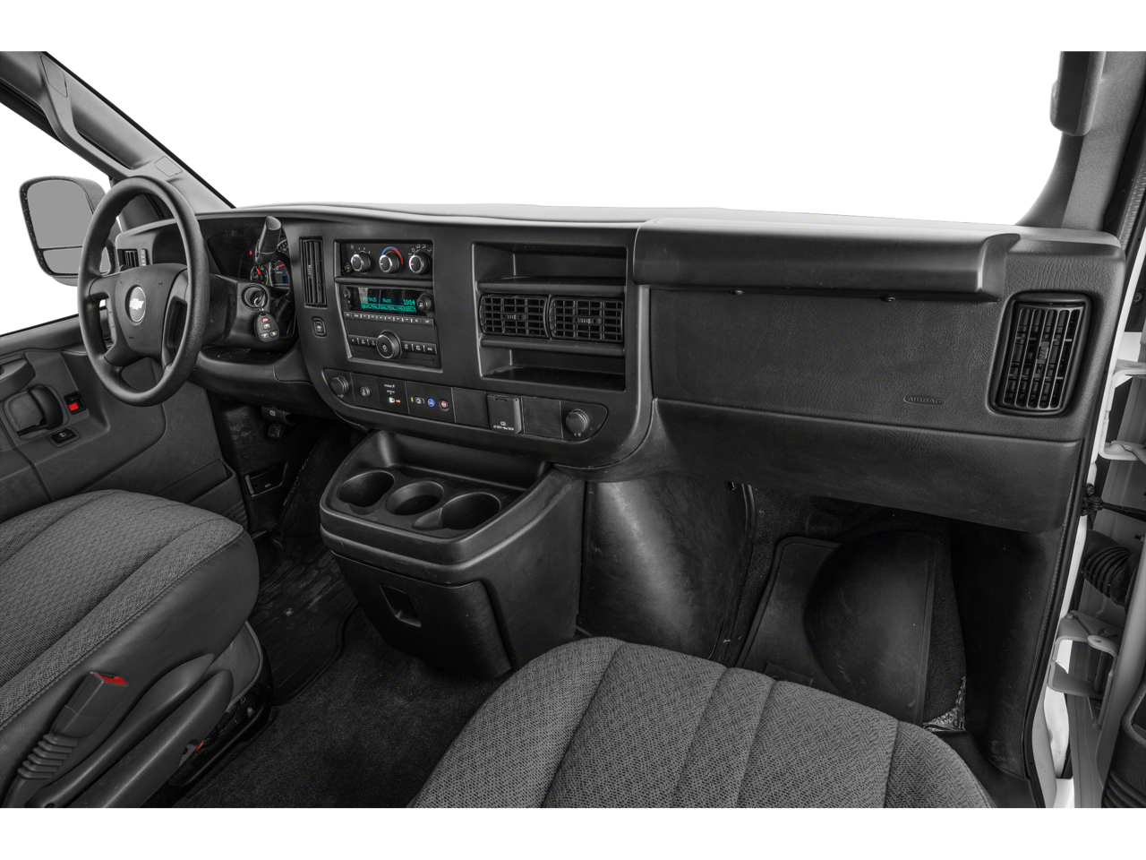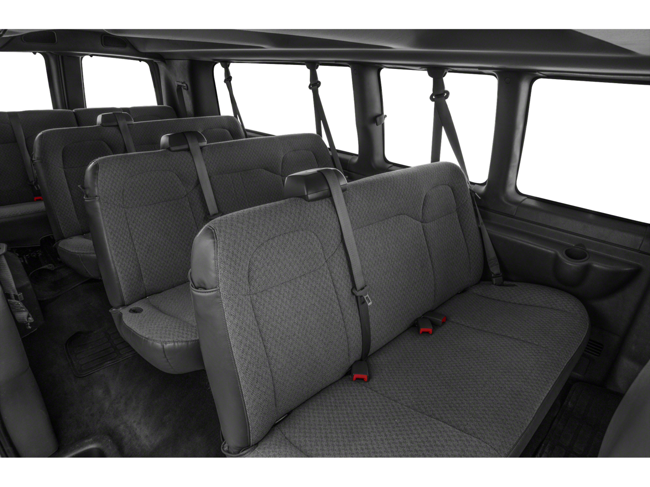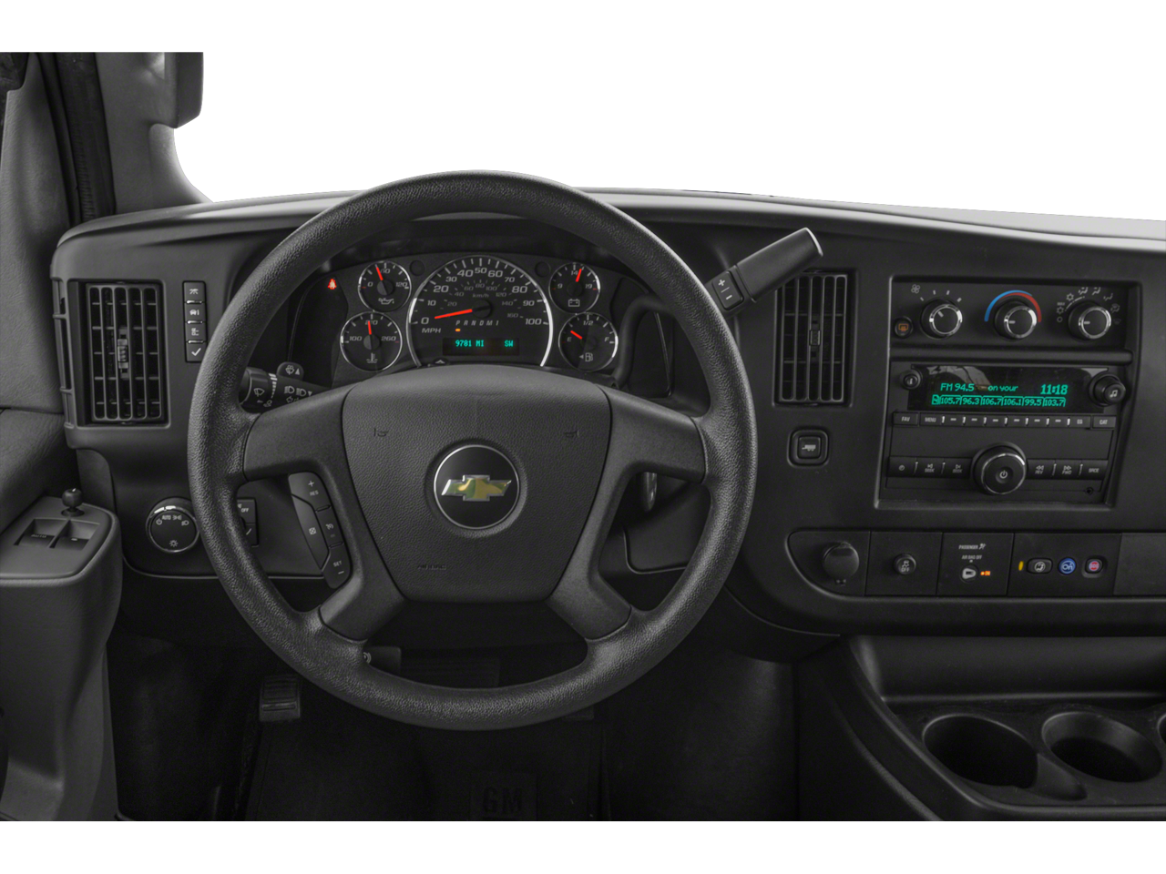 Chrome Appearance Package (Chrome Grille and Front & Rear Chrome Bumpers w/Step-Pad), Preferred Equipment Group 1LS, 12-Passenger Seating (2-3-3-4 Seating Config), 15-Passenger Seating (2-3-3-3-4 Seating Config), 16 x 6.5 Steel Wheels, 2 Speakers, 3.42 Rear Axle Ratio, 3rd row seats: bench, 4-Wheel Disc Brakes, 4th-Row Bench Seat, ABS brakes, Air Conditioning, AM/FM radio, AM/FM Stereo w/MP3 Player, Compass, Custom Vinyl Seat Trim, Delay-off headlights, Deluxe Console w/Swing Out Storage Bin, Driver door bin, Driver vanity mirror, Driver's Seat Mounted Armrest, Dual front impact airbags, Dual front side impact airbags, Electronic Stability Control, Emergency communication system: OnStar and Chevrolet connected services capable, Front anti-roll bar, Front Bucket Seats, Front reading lights, Front Reclining High-Back Bucket Seats, Front wheel independent suspension, Fully automatic headlights, Heated door mirrors, Low tire pressure warning, Occupant sensing airbag, Overhead airbag, Passenger cancellable airbag, Passenger door bin, Passenger seat mounted armrest, Passenger vanity mirror, Power door mirrors, Power steering, Power windows, Rear air conditioning, Rear reading lights, Reclining Front Bucket Seats w/Inboard Armrests, Remote Keyless Entry, Speed control, Tachometer, Theft Alarm Notification, Tilt steering wheel, Traction control, Trip computer, Variably intermittent wipers, and Voltmeter.