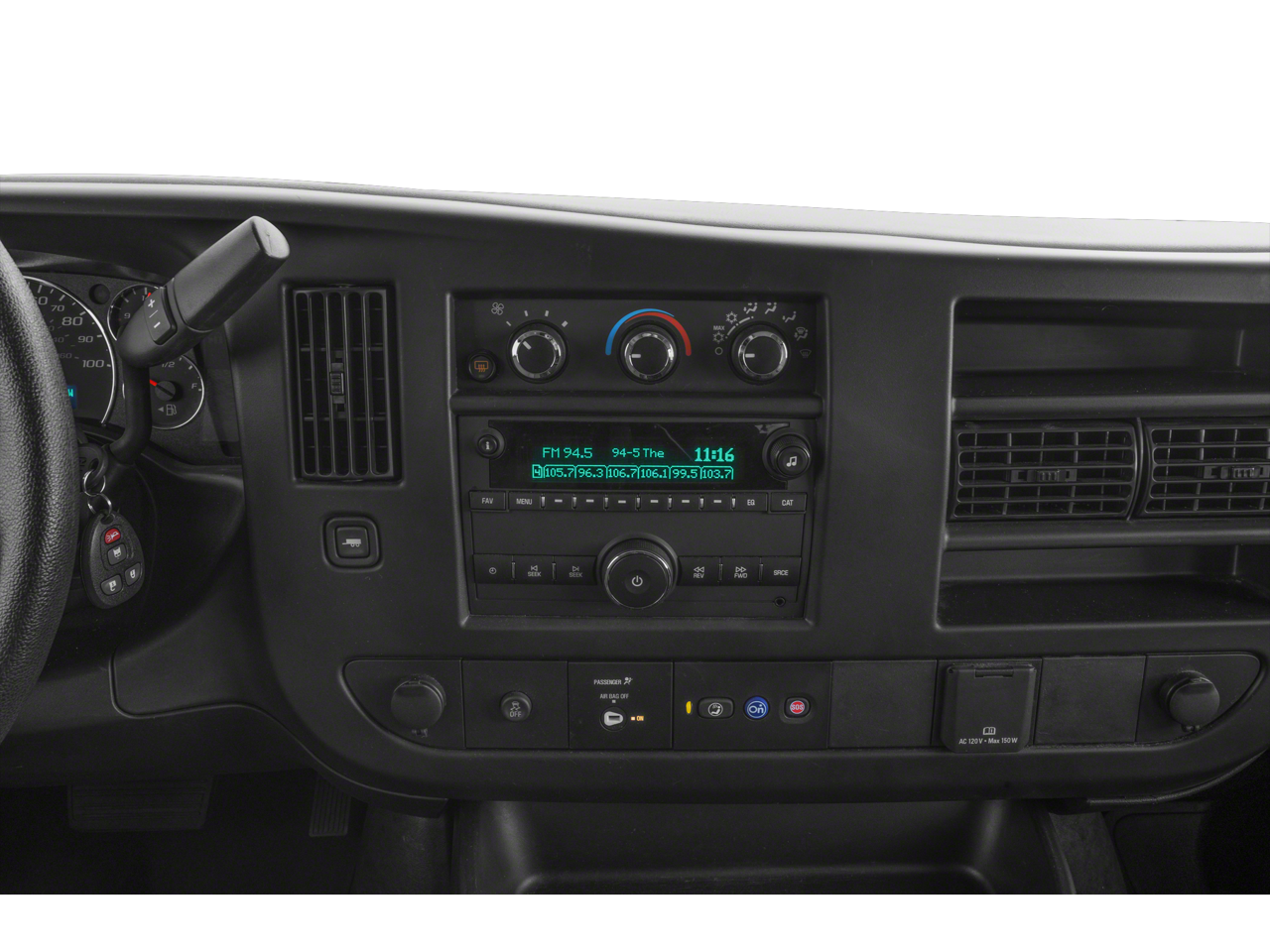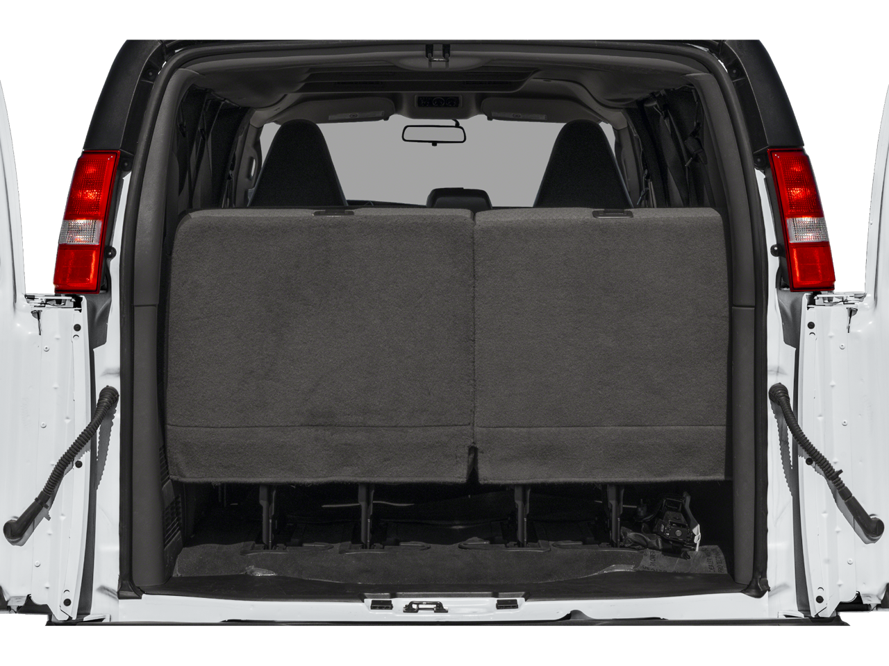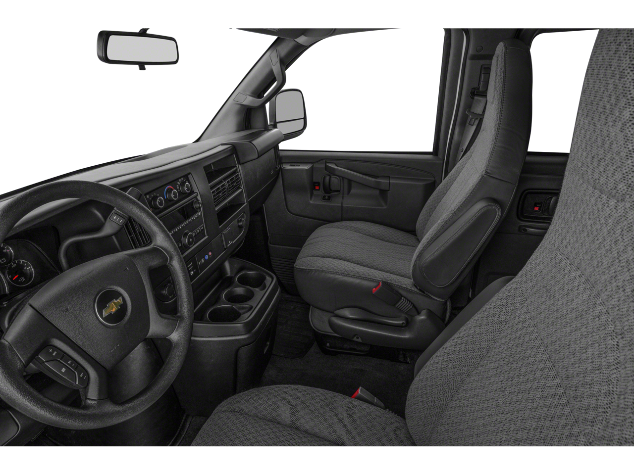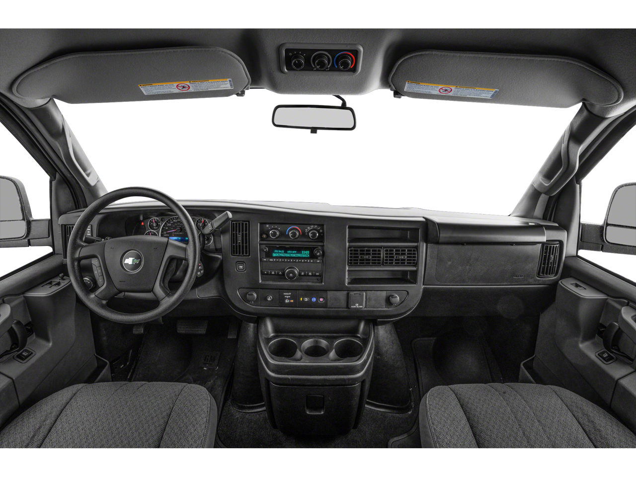 Chrome Appearance Package (Chrome Grille and Front & Rear Chrome Bumpers w/Step-Pad), Preferred Equipment Group 1LS, 12-Passenger Seating (2-3-3-4 Seating Config), 15-Passenger Seating (2-3-3-3-4 Seating Config), 16 x 6.5 Steel Wheels, 2 Speakers, 3.42 Rear Axle Ratio, 3rd row seats: bench, 4-Wheel Disc Brakes, 4th-Row Bench Seat, ABS brakes, Air Conditioning, AM/FM radio, AM/FM Stereo w/MP3 Player, Compass, Custom Vinyl Seat Trim, Delay-off headlights, Deluxe Console w/Swing Out Storage Bin, Driver door bin, Driver vanity mirror, Driver's Seat Mounted Armrest, Dual front impact airbags, Dual front side impact airbags, Electronic Stability Control, Emergency communication system: OnStar and Chevrolet connected services capable, Front anti-roll bar, Front Bucket Seats, Front reading lights, Front Reclining High-Back Bucket Seats, Front wheel independent suspension, Fully automatic headlights, Heated door mirrors, Low tire pressure warning, Occupant sensing airbag, Overhead airbag, Passenger cancellable airbag, Passenger door bin, Passenger seat mounted armrest, Passenger vanity mirror, Power door mirrors, Power steering, Power windows, Rear air conditioning, Rear reading lights, Reclining Front Bucket Seats w/Inboard Armrests, Remote Keyless Entry, Speed control, Tachometer, Theft Alarm Notification, Tilt steering wheel, Traction control, Trip computer, Variably intermittent wipers, and Voltmeter.