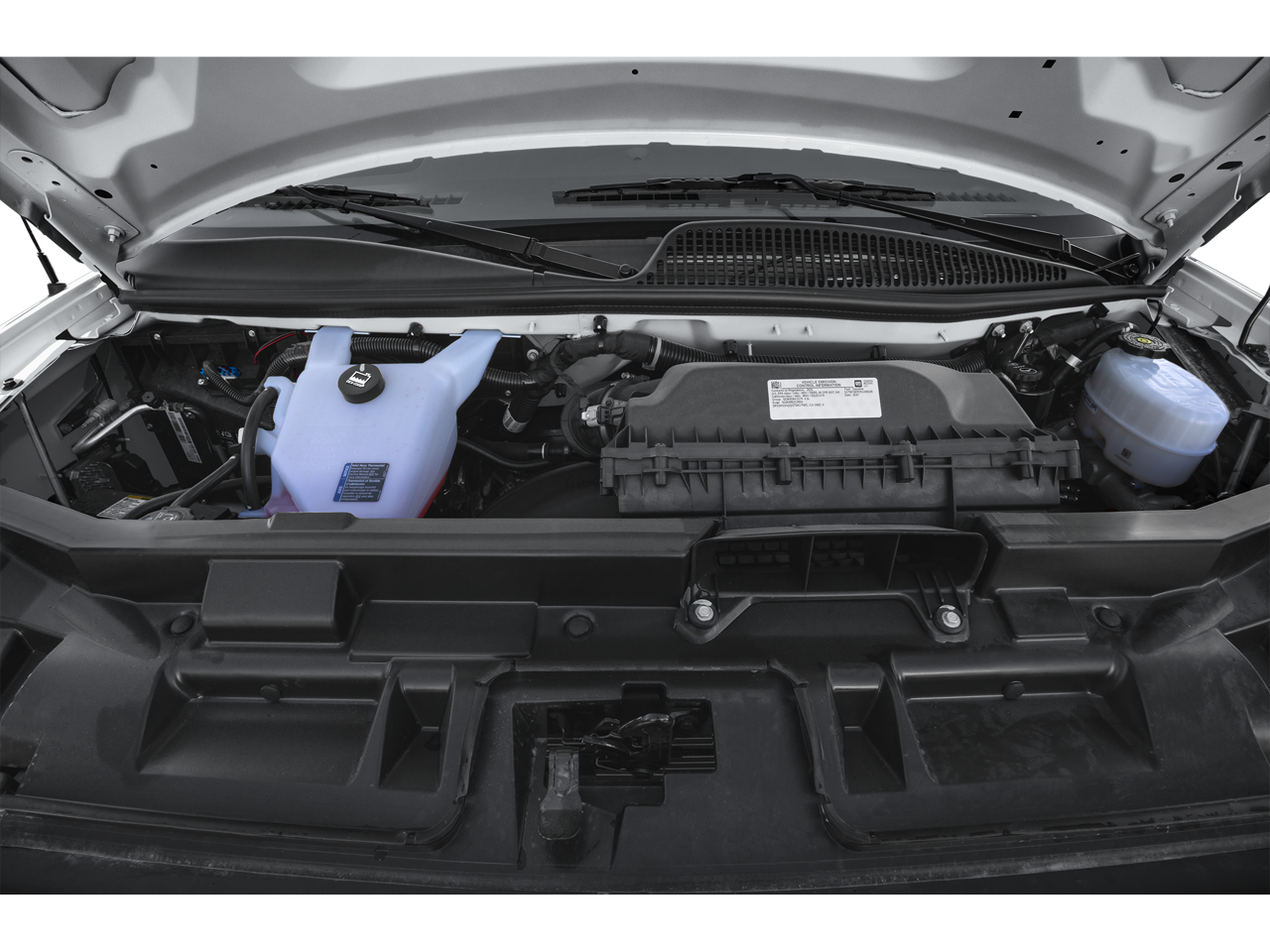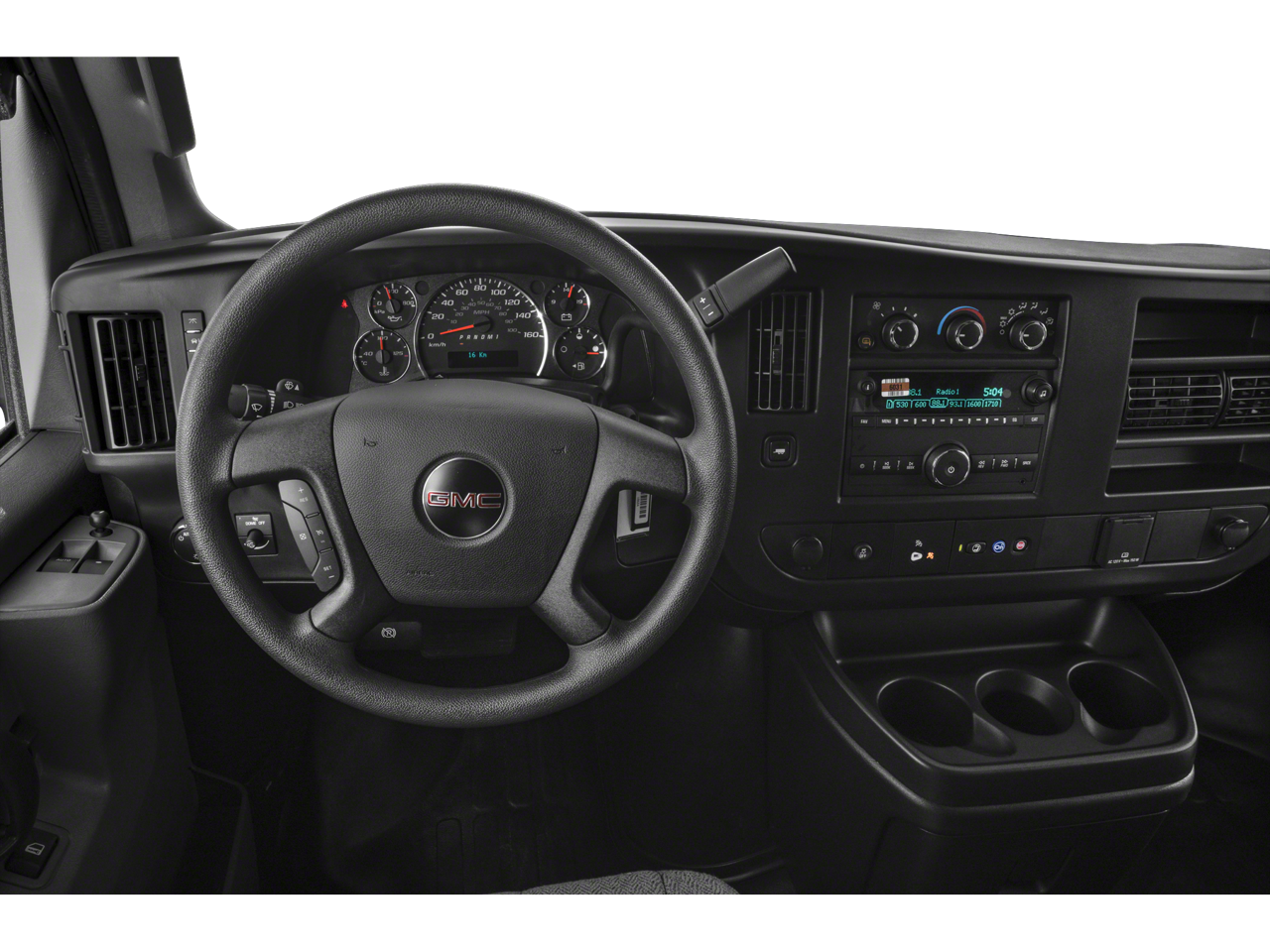 Chrome Appearance Package (Chrome Grille and Front & Rear Chrome Bumpers w/Step-Pad), Driver Convenience Package (Cruise Control and Tilt Steering Wheel), Preferred Equipment Group 1WT, 16 x 6.5 Steel Wheels, 2 Speakers, 3.42 Rear Axle Ratio, 4-Wheel Disc Brakes, ABS brakes, Air Conditioning, AM/FM radio, AM/FM Stereo w/MP3 Player, Black Rubberized-Vinyl Front Only Floor Covering, Delay-off headlights, Driver & Front Passenger High-Back Bucket Seats, Driver door bin, Driver's Seat Mounted Armrest, Dual front impact airbags, Dual front side impact airbags, Electronic Stability Control, Emergency communication system: OnStar and GMC connected services capable, Engine Cover Console w/Swing-Out Storage Bin, Fixed Rear Door Window Glass, Fixed Rear Side Door Window Glass, Front anti-roll bar, Front Bucket Seats, Front Reclining High-Back Bucket Seats, Front wheel independent suspension, Full-Length Black Rubberized-Vinyl Floor Covering, Fully automatic headlights, Heated door mirrors, Low tire pressure warning, Occupant sensing airbag, Overhead airbag, Passenger cancellable airbag, Passenger door bin, Passenger seat mounted armrest, Power door mirrors, Power steering, Power windows, Rear & Side Cargo Door Glass, Rear Side Door Glass Window Security Bar, Reclining Front Bucket Seats w/Inboard Armrests, Single-Zone Manual Air Conditioning, Tachometer, Traction control, Trip computer, Variably intermittent wipers, Vinyl Seat Trim, and Voltmeter.